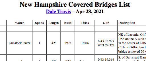 Use these handy checklists to track your journey across the Granite State! One is organized alphabetically by town, the other by the official bridge numbers assigned by the State of New Hampshire.