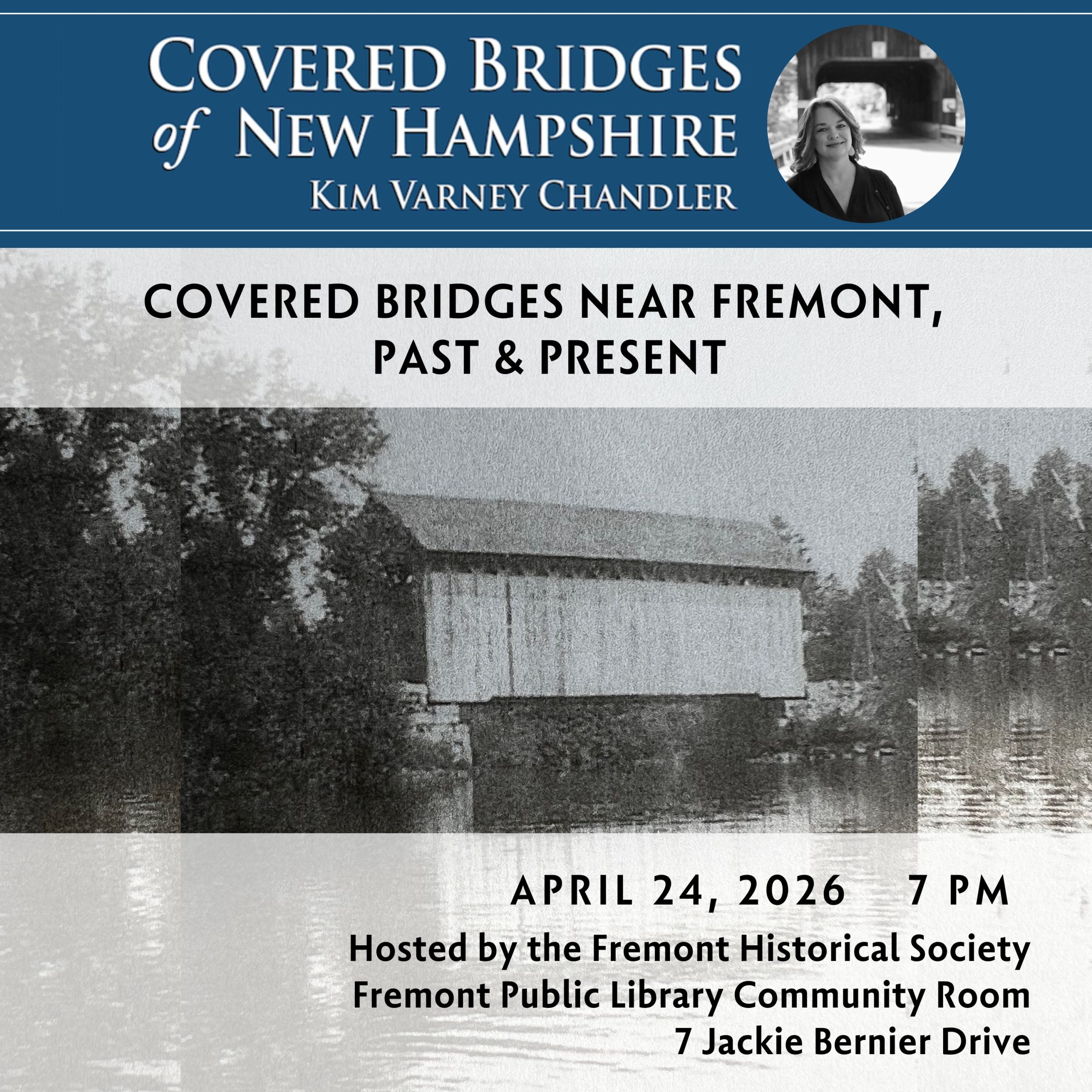 New Hampshire is home to more than 61 covered bridges, 46 of which have stood for over a century. In this engaging program, author and historian Kim presents an overview of these remarkable structures, with a special focus on the covered bridges that once existed in the Fremont area but have since been lost to time.